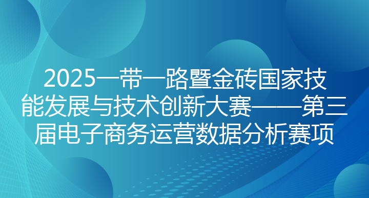 本赛项落实金砖国家《厦门宣言》《约翰内斯堡宣言》《巴西利亚宣言》《莫斯科宣言》《新德里宣言》和《北京宣言》中关于技能发展工作的相关精神,贯彻落实习近平总书记关于技能人才工作的重要指示精神,以培养国际化、高技术技能水平的未来技术技能人才和人文交流人才为目标,旨在考核参赛选手的电子商务运营数据采集、数据处理、数据分析、数据可视化、数据报告撰写等数字技能和素养。
